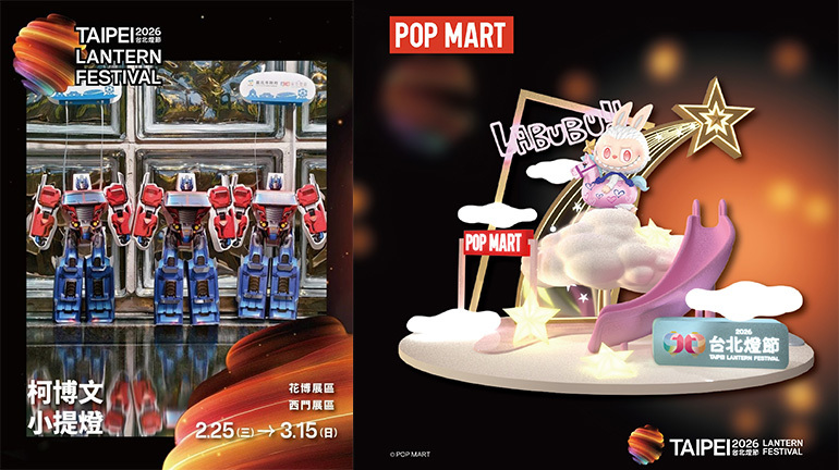 引用來源:台北旅遊網 「2026台北燈節」將於2/25~3/15盛大舉行,今年推出「雙展區、雙IP」策展概念,範圍橫跨西門展區、花博展區。最吸睛的亮點莫過於攜手國際知名 IP《變形金剛》、《泡泡瑪特》,打造具有好萊塢等級的光影藝術盛宴。