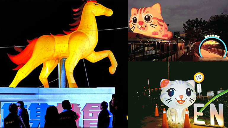 燈會主場位於集集火車站,展出七公尺高的「金馬」主燈,透過氣膜技術展現駿馬昂首的神態,象徵「馬到成功」的吉祥寓意。此外,火車站周邊還有以保育類動物為原型設計的「石虎兄妹」氣膜花燈,圓潤的身形與靈動大眼非常吸睛,無論是乖巧坐著或趴在火車上的造型,都巧妙地將在地生態與觀光創意結合。