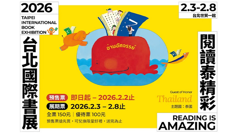 引用來源:台北國際書展 官網 2026台北國際書展將於2月3日至8日在台北世貿一館舉行,為期六天的文學盛會將匯聚全球出版業界進行交流。本屆書展由泰國擔任主題國,以「閱讀泰精彩」為主題,展現泰國融合傳統與創新的文化魅力。