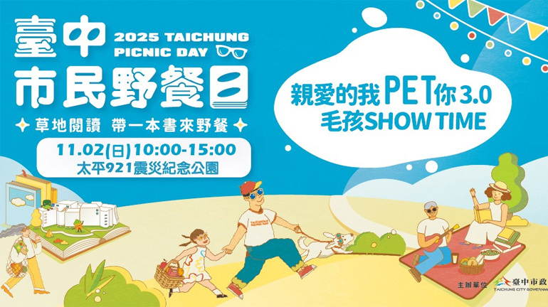 引用來源:官網 2025臺中市民野餐日「草地閱讀趣.一起野餐去」將於11月2日在太平區九二一震災紀念公園盛大舉行。動物保護防疫處特別規劃「親愛的我PET你3.0 毛孩SHOWTIME」系列活動,邀請市民攜帶毛小孩共享秋日時光。