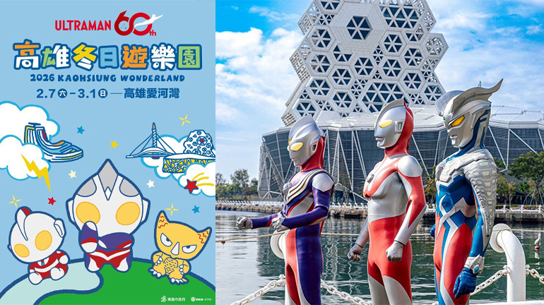 2/7~3/1在愛河灣及高雄港16至18號碼頭舉辦「Kaohsiung Wonderland 冬日遊樂園」燈會活動,今年特別邀請迎接60周年的日本經典IP「超人力霸王」擔任主題角色。活動期間,愛河灣主場域將結合港灣景觀打造大型主題裝置、夜間光影及互動展演,呈現充滿光與希望的節慶氛圍。